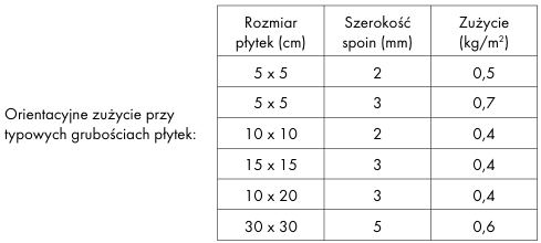 | Zużycie | 0,4 – 0,7 kg/m2 |