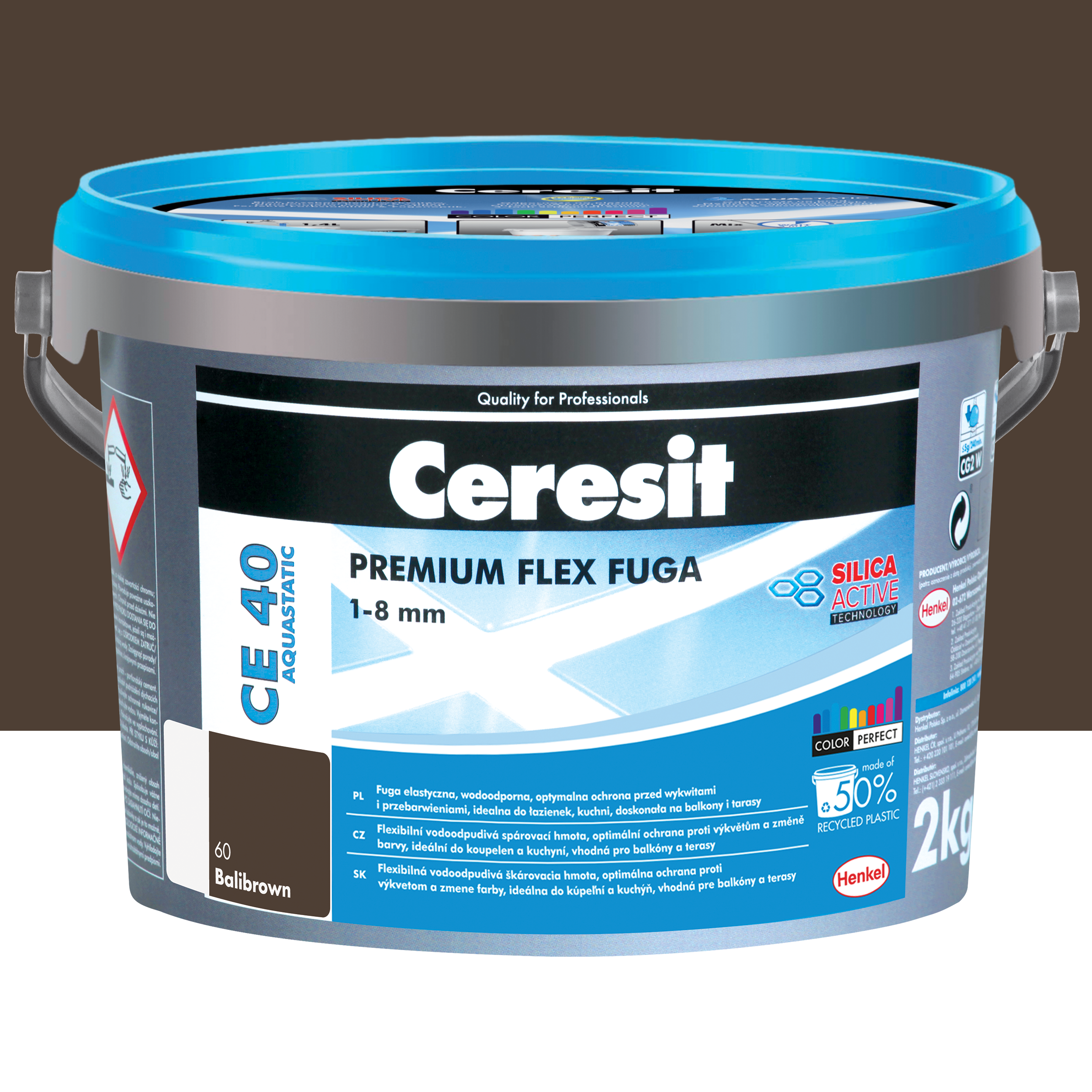 Dzięki Technologii Silica Active spoina CE 40 balibrown posiada optymalny czas wiązania i mycia w płytkach gresowych i ceramicznych. Specjalne wiązania oraz doskonała przyczepność do płytek zapewniają wysoką odporność na pęknięcia i ścieranie. CE 40 balibrown z technologią Silica Active to trwały i intensywny kolor bez wykwitów na długie lata. Zaprawa Ceresit CE 40 balibrown służy do spoinowania płytek gresowych, innych typów płytek ceramicznych, szklanych oraz kamiennych (również marmurów), zarówno na powierzchniach pionowych i poziomych. Potrójna Ochrona MicroProtect – formuła zawiera 3 specjalnie dobrane substancje czynne, które zapewniają długą i skuteczną ochronę przeciw grzybom i pleśniom. Formuła chroni nie tylko samą spoinę, lecz również przyległe do niej powierzchnie płytek (strefa inhibicji), zapewniając estetyczny wygląd okładziny ceramicznej. Efekt Aquastatic – powierzchniowe uszczelnienie spoiny (hydrofobizacja) powoduje, że krople wody utrzymują się w formie perełek na powierzchni fugi, co wydłuża znacząco działanie pleśniobójcze oraz chroni fugę przed zabrudzeniami. Zalety te umożliwiają eksploatacje spoiny w miejscach szczególnie narażonych na okresowe działanie wody np. łazienki, prysznice, kuchnie. Może być stosowana wewnątrz i na zewnątrz budynków. Szczególnie polecana, gdy płytki mocowane są na podłożach odkształcalnych: ogrzewane podłogi, płyty wiórowe i gipsowo-kartonowe. Wodoszczelność i odporność na oddziaływanie chemikaliów zapewnia stosowanie fugi Ceresit: CE 79. Dylatacje między płytkami, spoiny w narożach ścian, w połączeniach ścian z posadzką i przy urządzeniach sanitarnych należy wypełnić silikonem Ceresit CS 25 MicroProtect, a w przypadku spoinowania marmurów CS 29. W celu dodatkowego zabezpieczenia spoin i okładzin ceramicznych przed zabrudzeniami poprzez hydrofobizację, należy stosować silikonowy impregnat Ceresit CT 10.