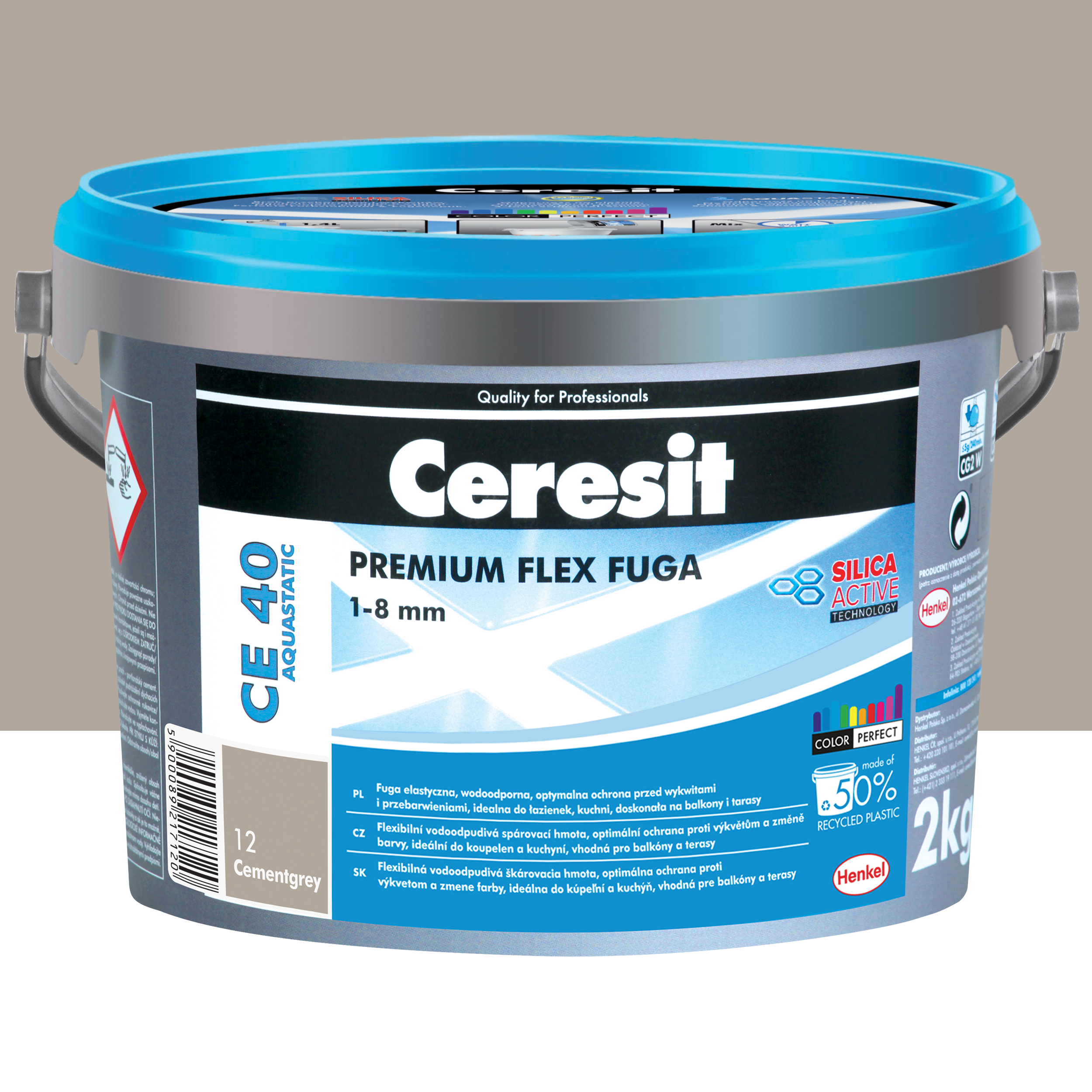 Dzięki Technologii Silica Active spoina CE 40 cemnetgrey posiada optymalny czas wiązania i mycia w płytkach gresowych i ceramicznych. Specjalne wiązania oraz doskonała przyczepność do płytek zapewniają wysoką odporność na pęknięcia i ścieranie. CE 40 cemnetgrey z technologią Silica Active to trwały i intensywny kolor bez wykwitów na długie lata. Zaprawa Ceresit CE 40 cemnetgrey służy do spoinowania płytek gresowych, innych typów płytek ceramicznych, szklanych oraz kamiennych (również marmurów), zarówno na powierzchniach pionowych i poziomych. Potrójna Ochrona MicroProtect – formuła zawiera 3 specjalnie dobrane substancje czynne, które zapewniają długą i skuteczną ochronę przeciw grzybom i pleśniom. Formuła chroni nie tylko samą spoinę, lecz również przyległe do niej powierzchnie płytek (strefa inhibicji), zapewniając estetyczny wygląd okładziny ceramicznej. Efekt Aquastatic – powierzchniowe uszczelnienie spoiny (hydrofobizacja) powoduje, że krople wody utrzymują się w formie perełek na powierzchni fugi, co wydłuża znacząco działanie pleśniobójcze oraz chroni fugę przed zabrudzeniami. Zalety te umożliwiają eksploatacje spoiny w miejscach szczególnie narażonych na okresowe działanie wody np. łazienki, prysznice, kuchnie. Może być stosowana wewnątrz i na zewnątrz budynków. Szczególnie polecana, gdy płytki mocowane są na podłożach odkształcalnych: ogrzewane podłogi, płyty wiórowe i gipsowo-kartonowe. Wodoszczelność i odporność na oddziaływanie chemikaliów zapewnia stosowanie fugi Ceresit: CE 79. Dylatacje między płytkami, spoiny w narożach ścian, w połączeniach ścian z posadzką i przy urządzeniach sanitarnych należy wypełnić silikonem Ceresit CS 25 MicroProtect, a w przypadku spoinowania marmurów CS 29. W celu dodatkowego zabezpieczenia spoin i okładzin ceramicznych przed zabrudzeniami poprzez hydrofobizację, należy stosować silikonowy impregnat Ceresit CT 10.