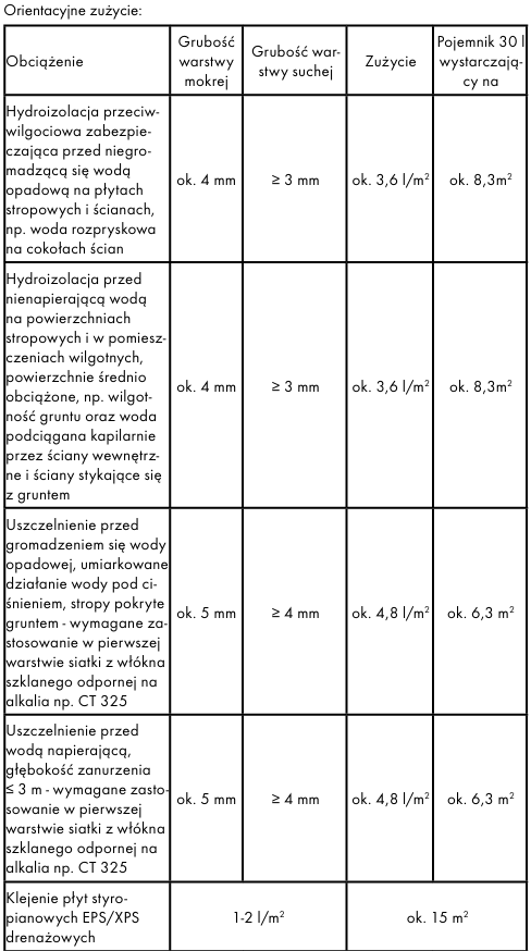 | Zużycie | 2,5 – 4 kg/m2 |