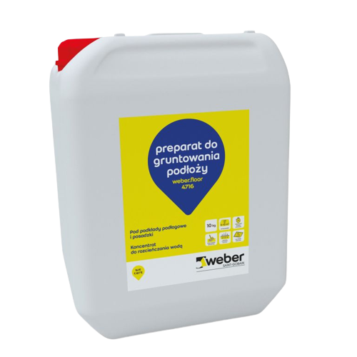 - Do gruntowania podłoży przed każdym zastosowaniem zapraw podłogowych i posadzek weber.floor oraz inne podkłady podłogowe