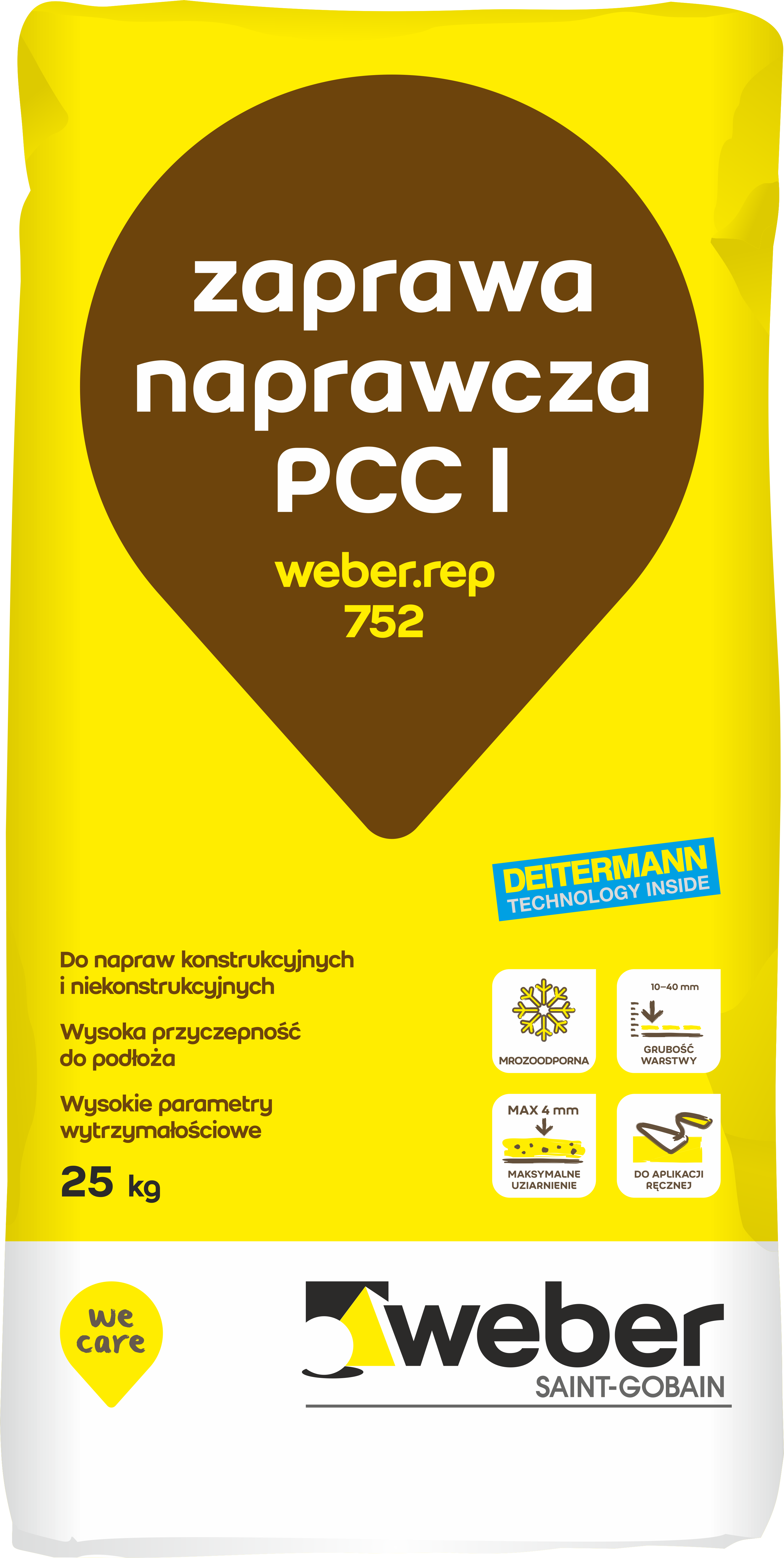weber.rep 752 (Cerinol ES 4) jest hydraulicznie wiążącą, gotową do użycia zaprawą cementową o uziarnieniu 4 mm. Zaprawa przeznaczona jest do wyrównywania powierzchni betonowych poddanych obciążeniom dynamicznym, w tym również obciążeniom ruchem kołowym o grubości warstwy od 10 do maksymalnie 40 mm.