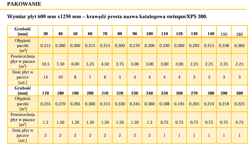 Płyty termoizolacyjne swissporXPS 300 produkowane są metodą ekstruzji i bezpośredniego spieniania. Dzięki temu procesowi powstają płyty o jednolitej, zamkniętej strukturze komórkowej. Oprócz bardzo dobrych właściwości termoizolacyjnych płyty te charakteryzują się niską nasiąkliwością oraz bardzo wysoką wytrzymałością na ściskanie. Płyty swissporXPS 300 zakończone są krawędziami prostymi. Powierzchnia płyt o gładkiej strukturze