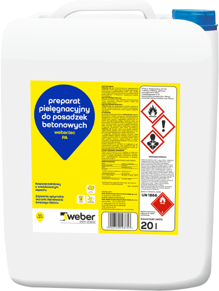 - zabezpieczenia powierzchni nowo wykonanych jastrychów, posadzek betonowych utwardzonych powierzchniowo posypkami weber.floor HB PLUS 1.5, weber.floor HB PLUS 3.0, weber.floor HB PLUS 6.0, przed zbyt szybką utratą wilgoci